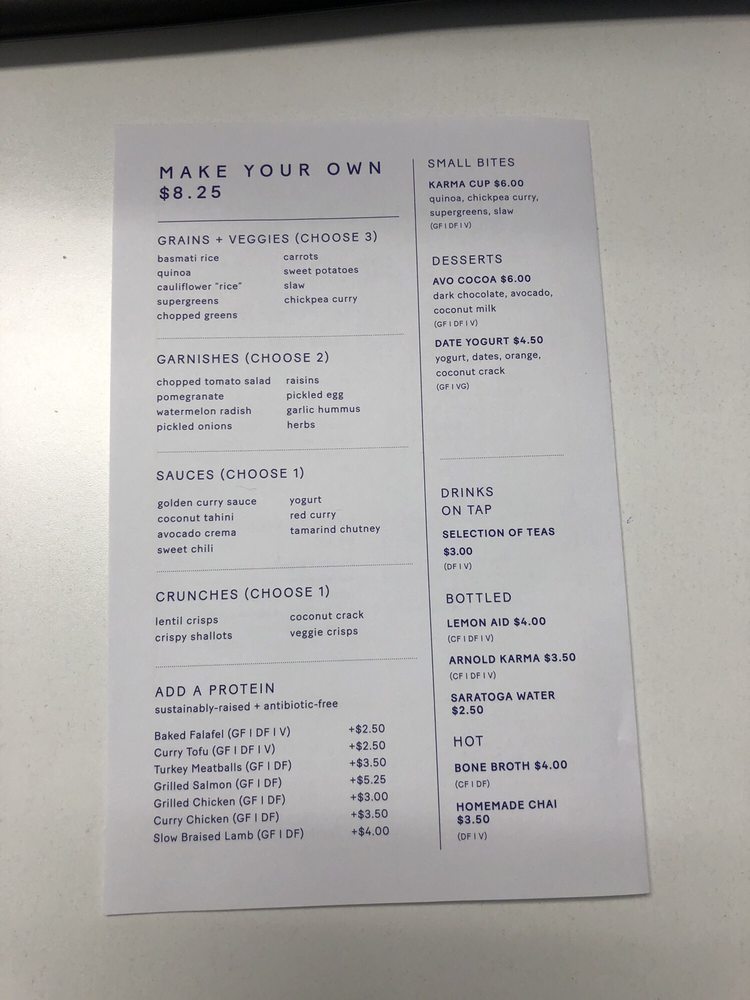 Shredded kale and romaine, sweet potato, pickled apples, roasted cashews, crispy rice, fresh herbs, sweet chili tahini[Vegan | Contains Nuts | Contains Sesame | Contains Soy | May Contain Traces of Gluten]